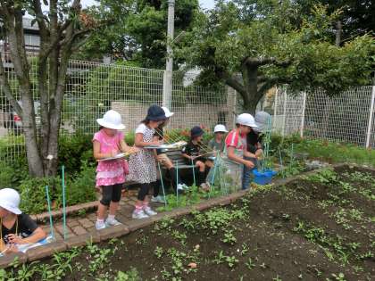「次来るときには、ミニトマトが赤くなってるといいなぁ〜」と子どもたち