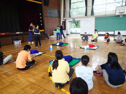 先生方は救急救命法については毎年訓練を積み重ねています。昨日は、例年にも増して心臓マッサージ、人工呼吸、AEDの操作などを徹底して訓練しました。その前には東京消防庁のサイトで正確な知識を学びテストを受け、修了証をいただきました。