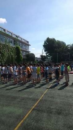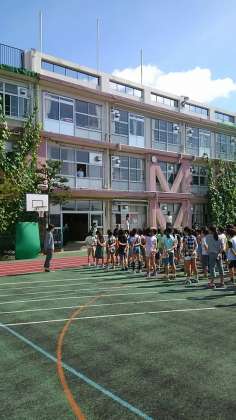 校長先生からは、自分の健康管理をしっかりすることが、話されました。次に6年生のスピーチ。代表委員会から、わくわくフェスタの目標。一時帰国児童の紹介。看護当番の先生から今週の生活目標についての話。暑い中しっかり話を聞いていました。