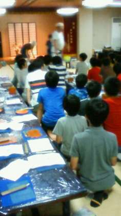 おいしい夕飯をいただき、これから、日光彫りの体験です。あらかじめデザインを決めてきました。手鏡、ペン立てなど、それぞれが選んだ形に下絵を描いてから始めます。