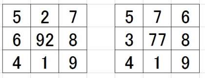 もう、やり方はわかりますね。周りの数字を一回ずつすべてつかい、真ん中の数字を作ってみよう。