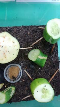 脱皮した雄の鈴虫が羽をこすって綺麗な音色で鳴きました。