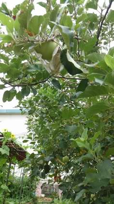 八幡ファームのりんごは、袋を被せていたので綺麗に育っています。