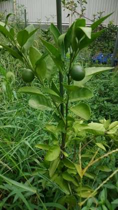 今年植えたみかんの木に、実が成っています。これからの生長が楽しみです。