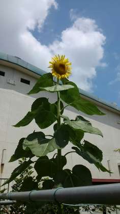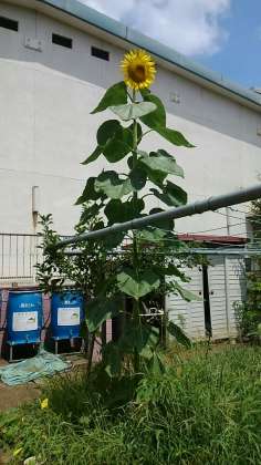 八幡ファームのひまわりで一番背の高いひまわりです。3mぐらい伸びています。