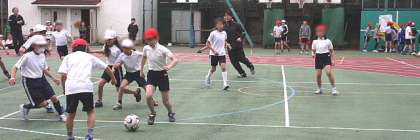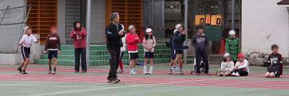4日、曇り空でちょっと肌寒い天気となりましたが、4年生3学級が、3・4時間目校庭でクラス対抗のサッカー大会をしました。一学級男女混合でA・Bの2チームを編成して総当たりで対戦しました。男子には日頃サッカークラブで鍛えている上手な子もいます。それでも、みんなが負けずに立ち向かって、力一杯走り回っていました。
