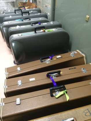 部員は39名集まりました。区内の四校から管楽器を貸していただき、全員分の楽器が揃いました。