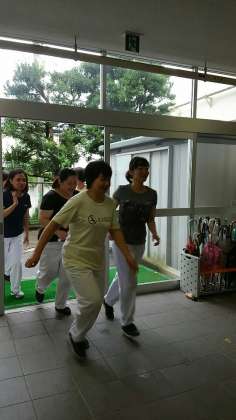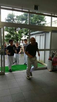 昨日は防災の日。給食調理員さん方が避難訓練を行いました。給食室から出火したことを想定して防火シャッターが降りた設定です。外へ出て校庭に避難しました。防火シャッターの仕組みも研修していました。