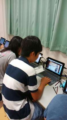 夏休みに設置されたICTタブレットを6年生が初めて使用して授業を行いました。1人1台使えるのでやり易いと話してくれました。