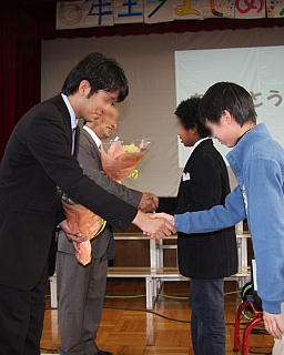 子どもたちからのお礼の花束が担任に贈られ、保護者代表、卒業対策委員からの心温まる言葉で、会が終了しました。