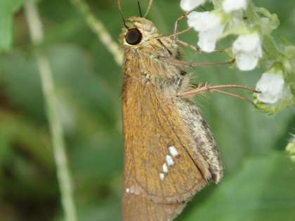 イチモンジセセリは目がかわいい。パッチリしたその目は漫画の主人公の様です。しかし、その幼虫はイネ科を食べますので、5年生が育てている稲にとっては害虫です。