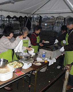 家庭科室ではお母さんたちが下ごしらえを、テントの下では、同窓会の皆さんが焼きそばを、おやじの会と一緒に参加してくださっているお父さんたちが焼き肉を焼いてくださいました。