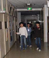 校長室からいよいよ暗い校舎内を探検です。九品仏ボランティア会の中学生や先輩たちが、校内のあちらこちらに仕掛けをして、みんなを楽しませて?くれました。