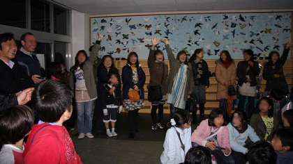最後は玄関ホールで閉会式。手伝いをしてくださった皆さんも集合して、締めの手拍子。大盛り上がりのうちに終了しました。