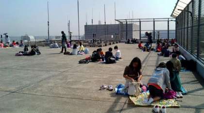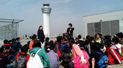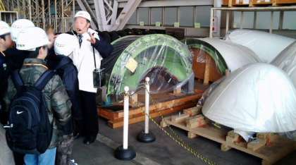 大型飛行機の先端部分の部品やタイヤ、ブレーキなども見学しました。係の方々にお礼を述べて、羽田空港第1ターミナルビルの屋上でお弁当のお昼ご飯を食べ、電車を乗り継いで帰りました。天気もよく、とても有意義で楽しい見学ができました。