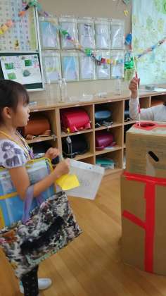5.6班は、ポイントおみくじです。入り口でじゃんけんをしておみくじの引く場所が決まります。黄色が30点、青が10点、赤が1点です。