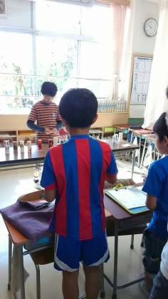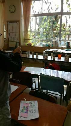 11.12班は、射的です。丸めた紙をゴムごと飛ばして的に当てます。割りばし鉄砲もあります。なかなか当たりませんでした。