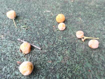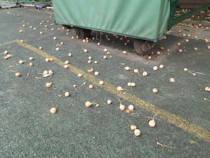 数年前から校庭のはしにあるイチョウの木にたくさんの銀杏が成るようになりました。独特の香りがし始めると朝の校庭には一面の銀杏が落ちています。これが一ヶ月ほど続きます。