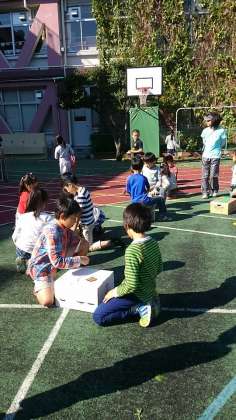 校庭で新BOP が、手作りめんこで勝ち抜き戦をやっていました。箱の上でやっているので職員室に太鼓の音のように響いてきました。元気のよさが伝わってきました。