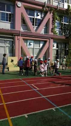 始業前に八幡っ子タイムの縦割り交流がありました。校庭では、ドロケイやめちゃあてをやっていました。