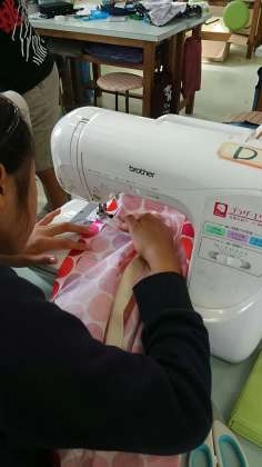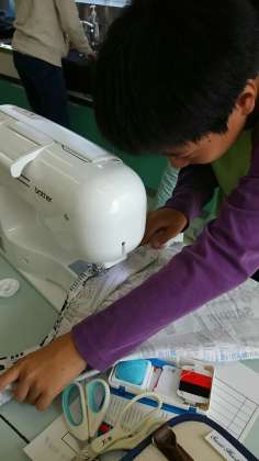 6年生はエプロン作りに取り組んでいます。しつけをしてからミシン縫いをします。出来上がりが楽しみです。