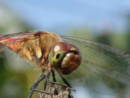 八幡ファームにはいろいろな生き物がいます。昨日は赤とんぼがいました。しかも雄と雌。それぞれお気に入りの枝の先を奪い合っていました。