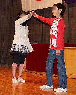 18日(木)朝の児童集会は「ものまね集会」でした。この日は今年度最後の集会委員会主催の児童集会で、集会委員児童が舞台上でものまねをして、集まった全校児童が何のものまねかを当てるという内容でした。集会委員が演じるユーモラスなものまねに、会場の体育館は大いに盛り上がりました。