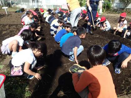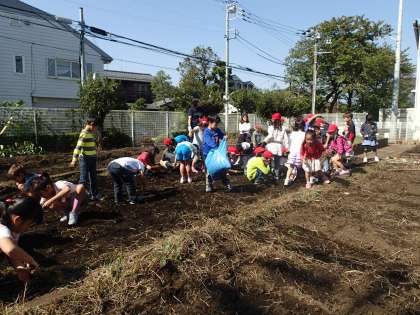 そのあとは耕運機をかけて畝作り。みんなで協力して作業をしました。みんなとても楽しそうでした。