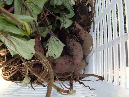 昨日は1年生がサツマイモの収穫をしました。例年に比べて天候のせいか、育ちがとても悪かったんですが、それでも土の中から次々に現れるサツマイモを見て、一年生は大興奮!みんなで一生懸命掘っていました。
