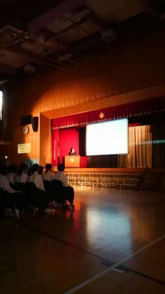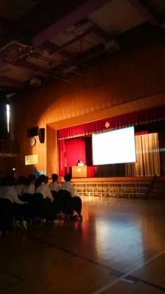 さぎそう学舎八幡中学校学芸発表会が開催されています。開会式の後、英語スピーチがありました。学年代表者が堂々と会場の参観者に自分の考えを述べていました。