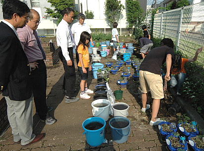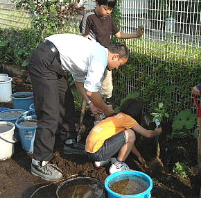 近所に大分県職員の住宅があり、そこから本校に通っている児童がいます。そのような縁から、このほど「カボス」の苗木を寄付していただきました。6日(金)放課後、職員住宅にお住まいの保護者1名と大分県の関係者2名の方が来校してくださり、6年生の環境委員の子どもたちに手伝ってもらい、届いたカボスの苗を学校園に植えました。