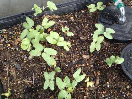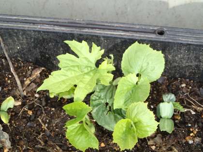 11月も半ばに近くなってきたこの時期にヘチマを植えてあった場所から新芽が出てきました。この芽がなにかわかるかな?