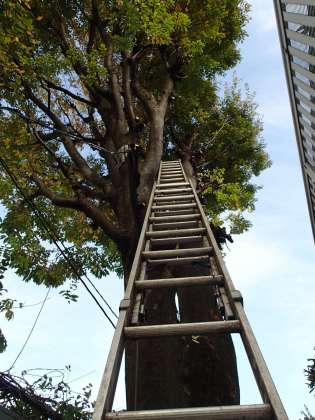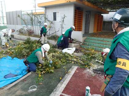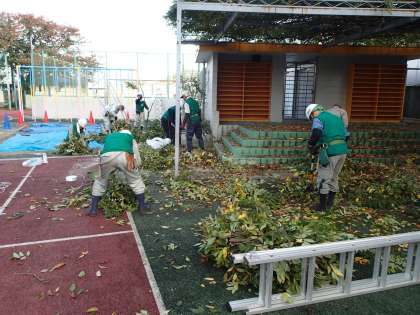 今週は緑友会の方々が校庭やハート池周辺、八幡ファーム、ビオトープ、竹林の中の樹木を剪定してくださいました。お昼頃に来られて夕方まで、高い樹木に上り作業をされました。枝のどの場所を切るかで次の樹形が決まります。