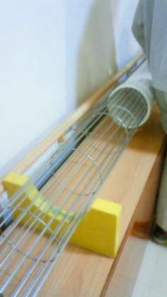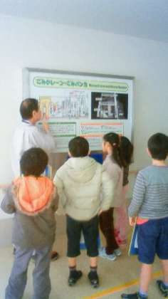 ここは、世田谷清掃工場です。ろ過式集じん器の見本があります。この管を通ると排ガスがきれいになります。