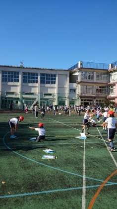 中休みの5分間短縄跳びをします。縄跳びカードに記入しながら取り組んでいる児童もいました。