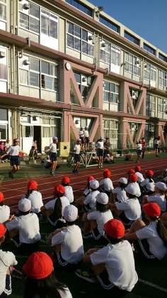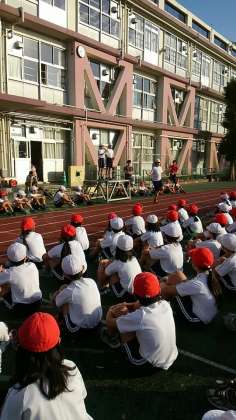 縄跳び月間中ですが、体育朝会で運動委員会が跳び方の手本を