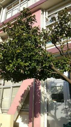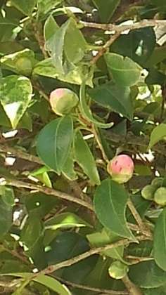 校庭の椿が咲き始めました。色は、ピンク色です。これからが楽しみです。