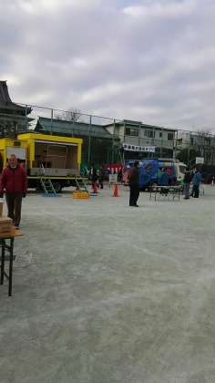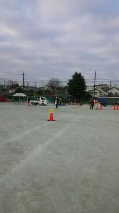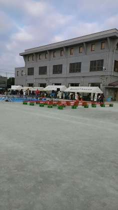 奥沢地区まつりの準備が、奥沢中学校で行われています。マラソン大会の受付中です。