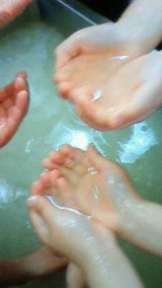 今度は、ねりを入れて撹拌します。先ほどと違うでしょうか?ねりの働きは、広げる、うかせる、つつみこむの3つです。さあ、すきます。