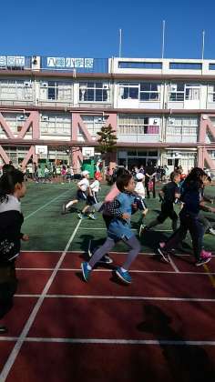 中休みのマラソンタイムに子どもたちは、元気よく走りました。終わった後には、「暑い、暑い。」と汗を拭いていました。