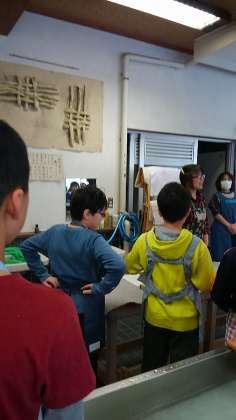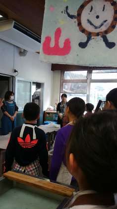 山崎小学校に紙漉き体験に来ました。始めの説明を受けました。