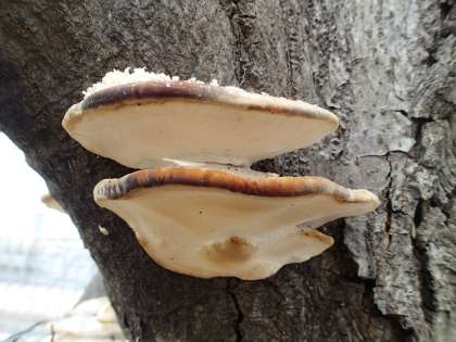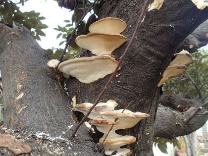 今日はGPSの方々が八幡ファームのクスノキの剪定をしました。すると幹の中間にサルノコシカケ科のコフキサルノコシカケがたくさん現れました。