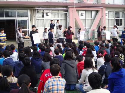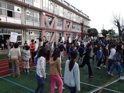今朝の児童集会は児童の似顔絵を見て、その人を連れてくるというゲーム。各クラスで校庭を歩きまわって探していました。中には誰もいないところを歩きまわっている児童も。ほとんどのクラスが探しだすことができました。