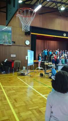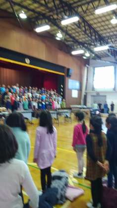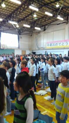 6年生から手作りの雑巾を各学年にいただきました。その後、全員合唱ベストフレンドを歌いました。