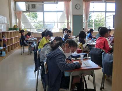 校庭で捕まえたアリを、ケースに入れてじっくりと
