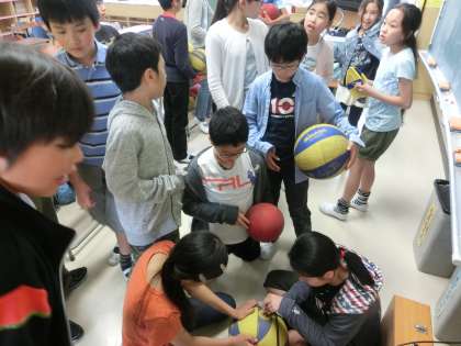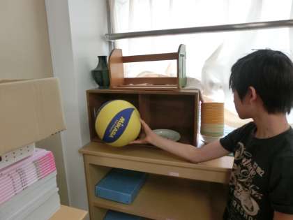 体育倉庫の開閉や体育朝会のサポートをしています。