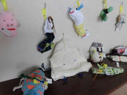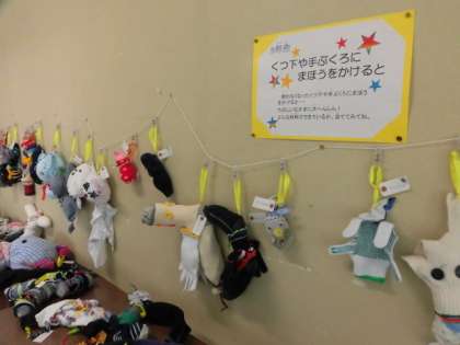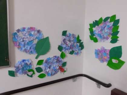 あじさいの花を折り紙で作った共同制作も展示しています。