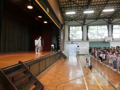 校長先生の話、6年生のスピーチ、日直の先生の話のあとに