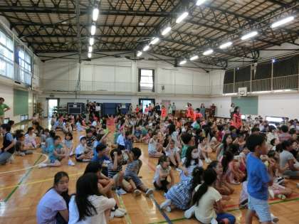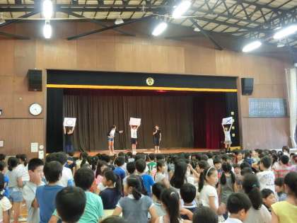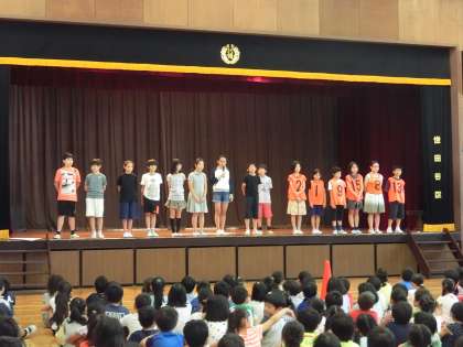 学校に関するクイズを考え、練習をして本番を迎えました。