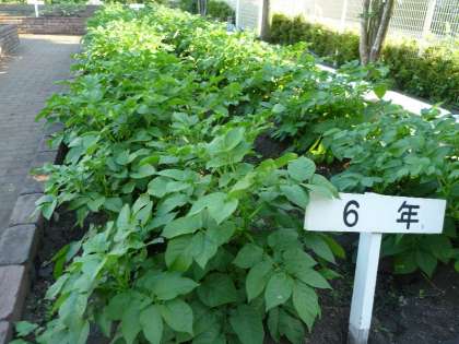 今年の学校園の野菜は、各学年の児童が一生懸命畑を耕し、畝を作り、種や苗を植えました。銀雄クラブの方々や先生方も共に協力し、畑を作り上げました。多少、不格好な畝もありますが、自分たちでやったという満足感の中で、自ら進んで育てています。